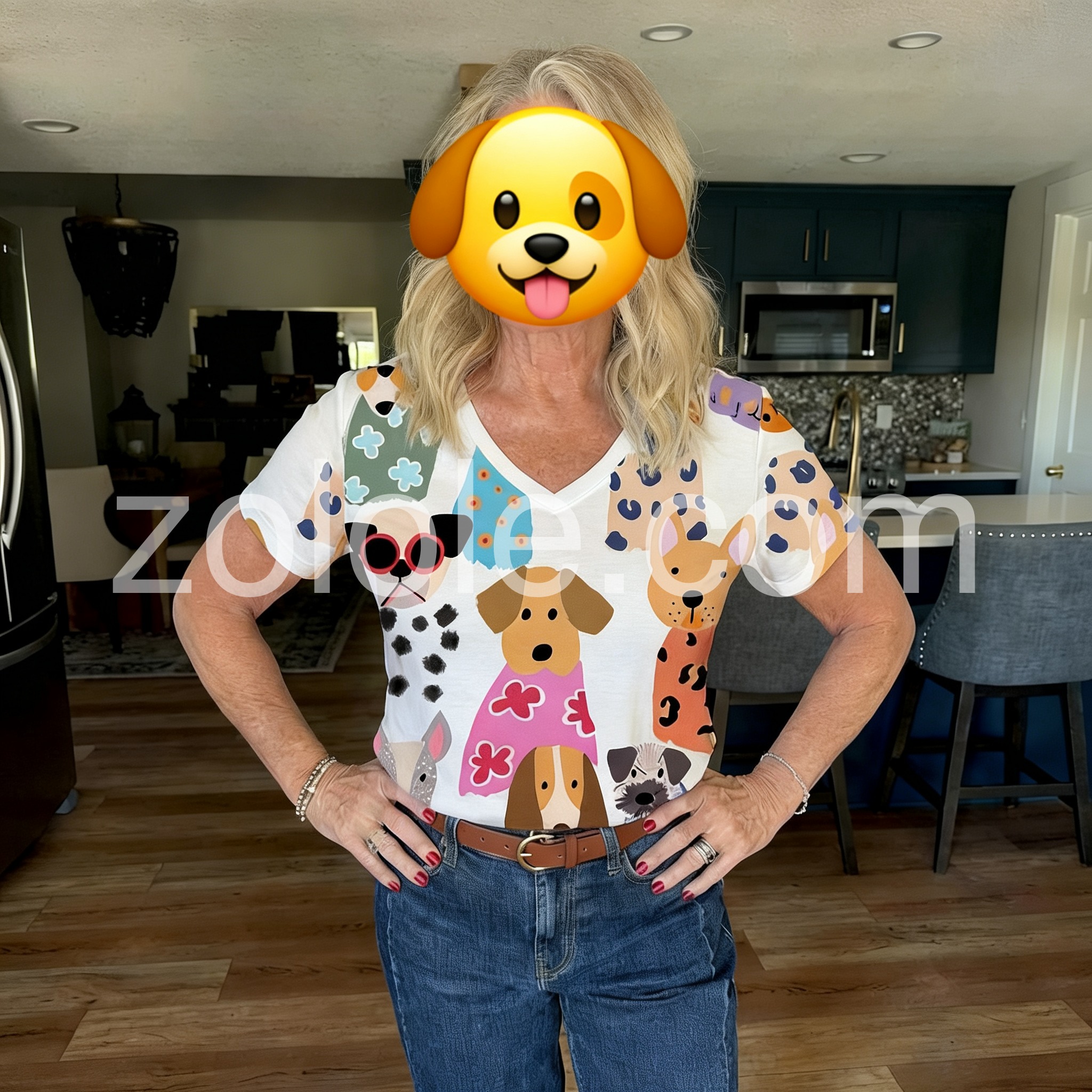 Whimsical Dog Print Short Sleeve Top