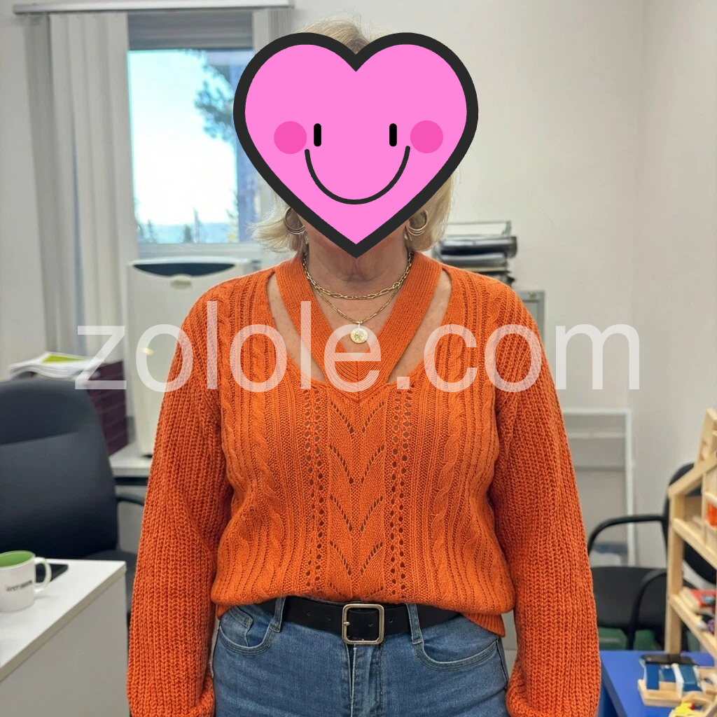 Orange Plain Long Sleeve Sweater