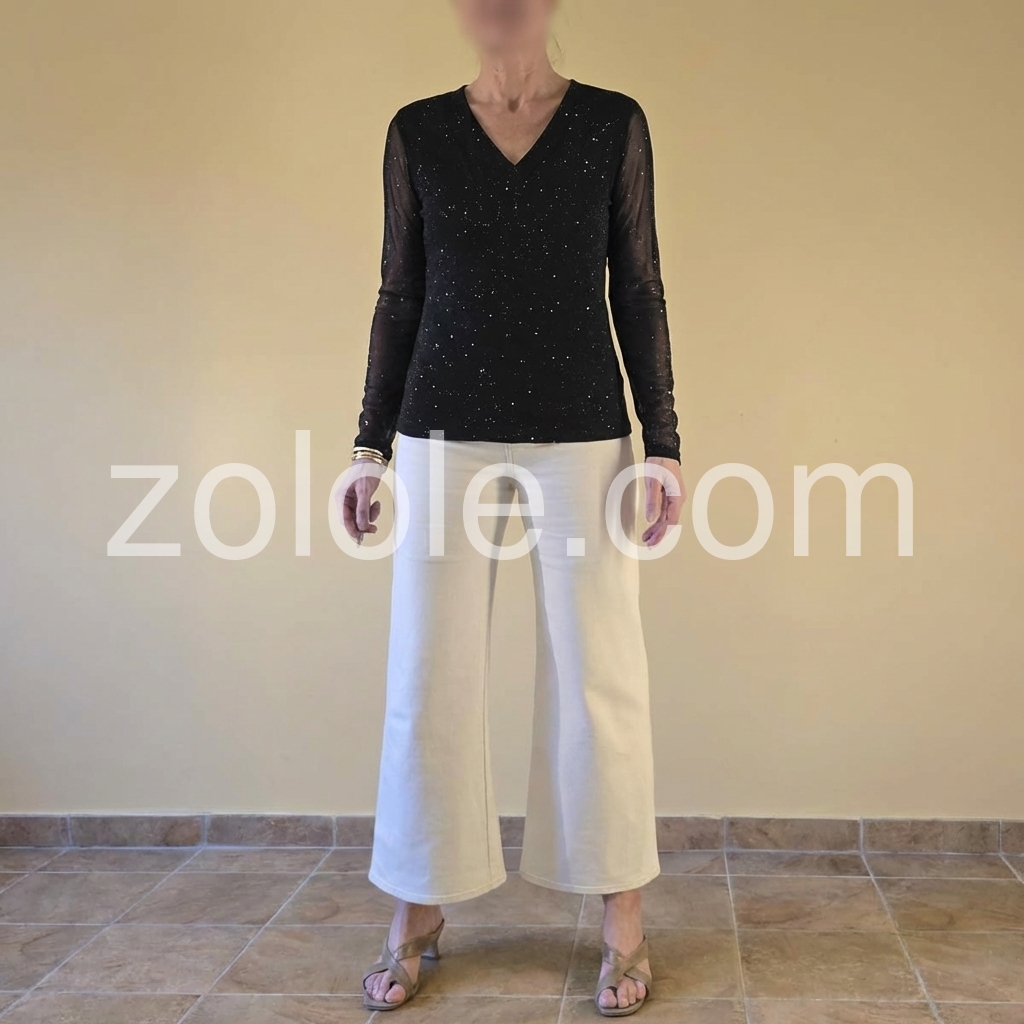 Black Sparkle Sequin V-Neck Long Sleeve Top