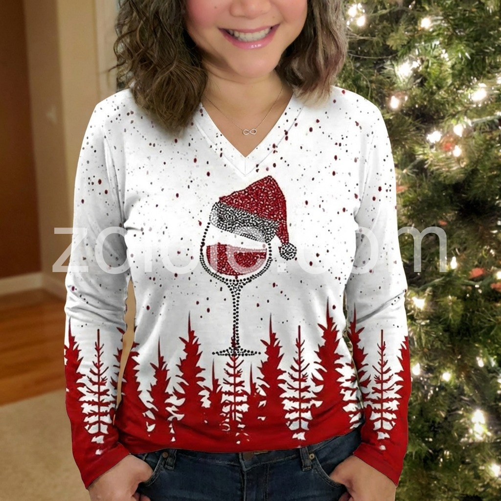 Tipsy Red Wine Holiday Party Long Sleeve Top