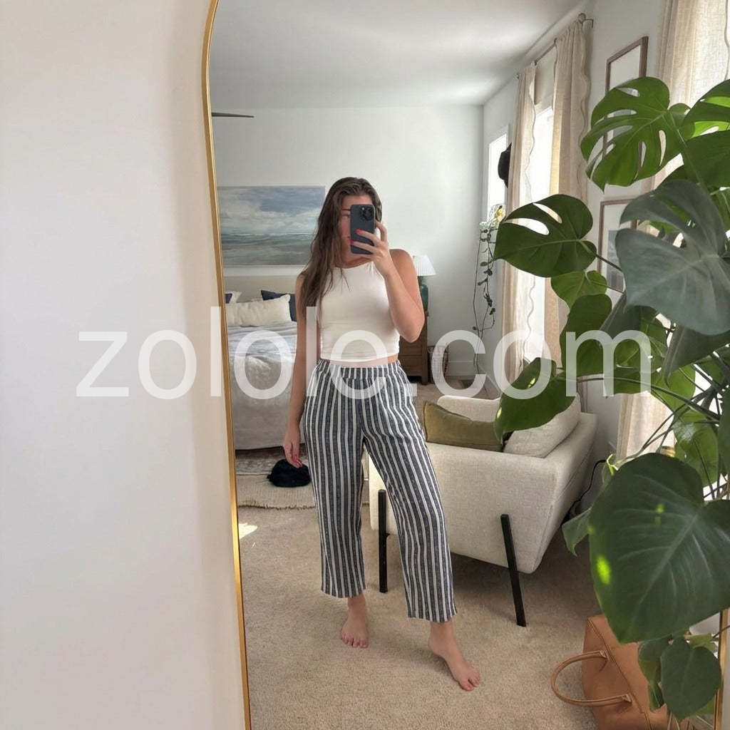 Classy Striped Elastic Waistband Pants