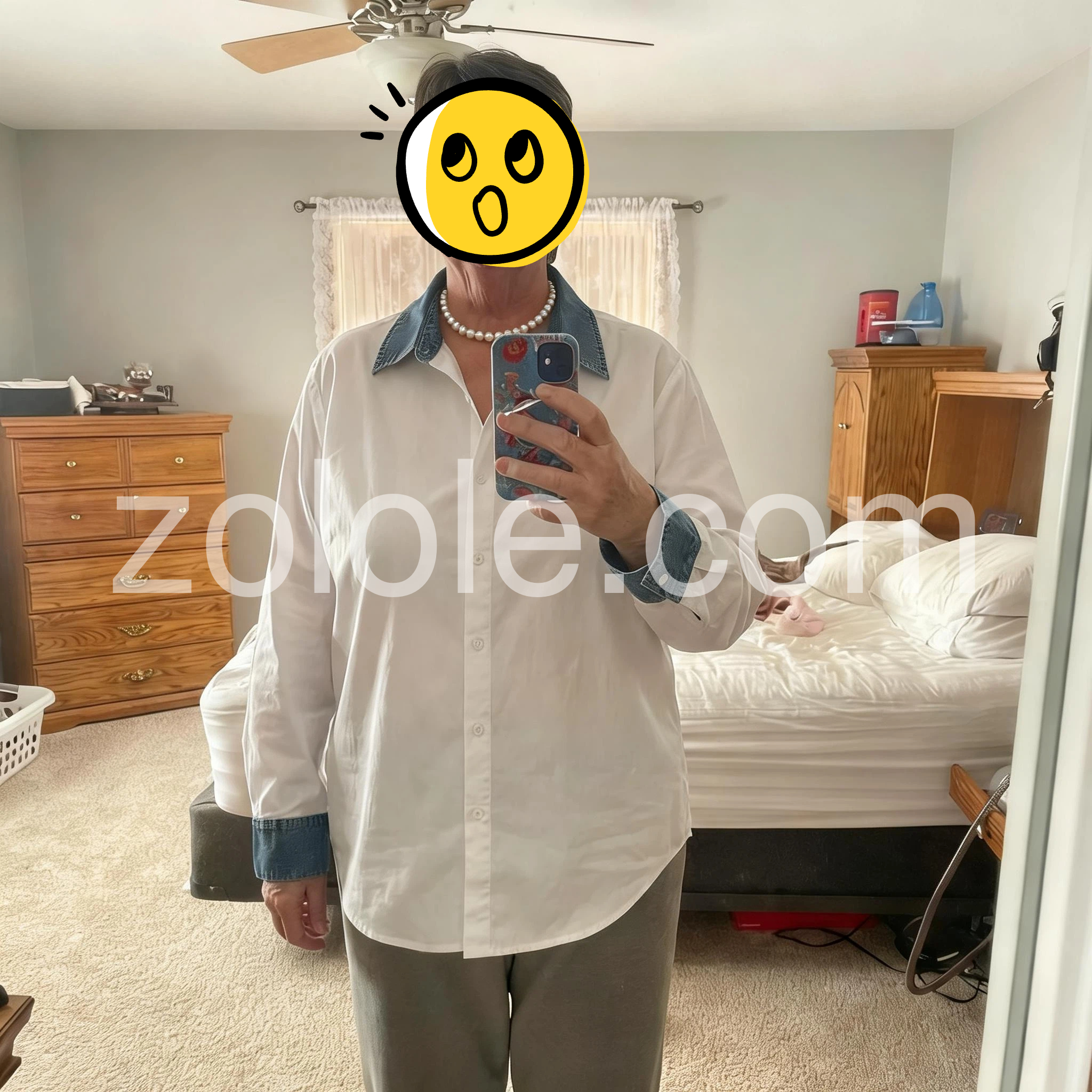 Stylish White Denim Collar & Cuffs Shirt