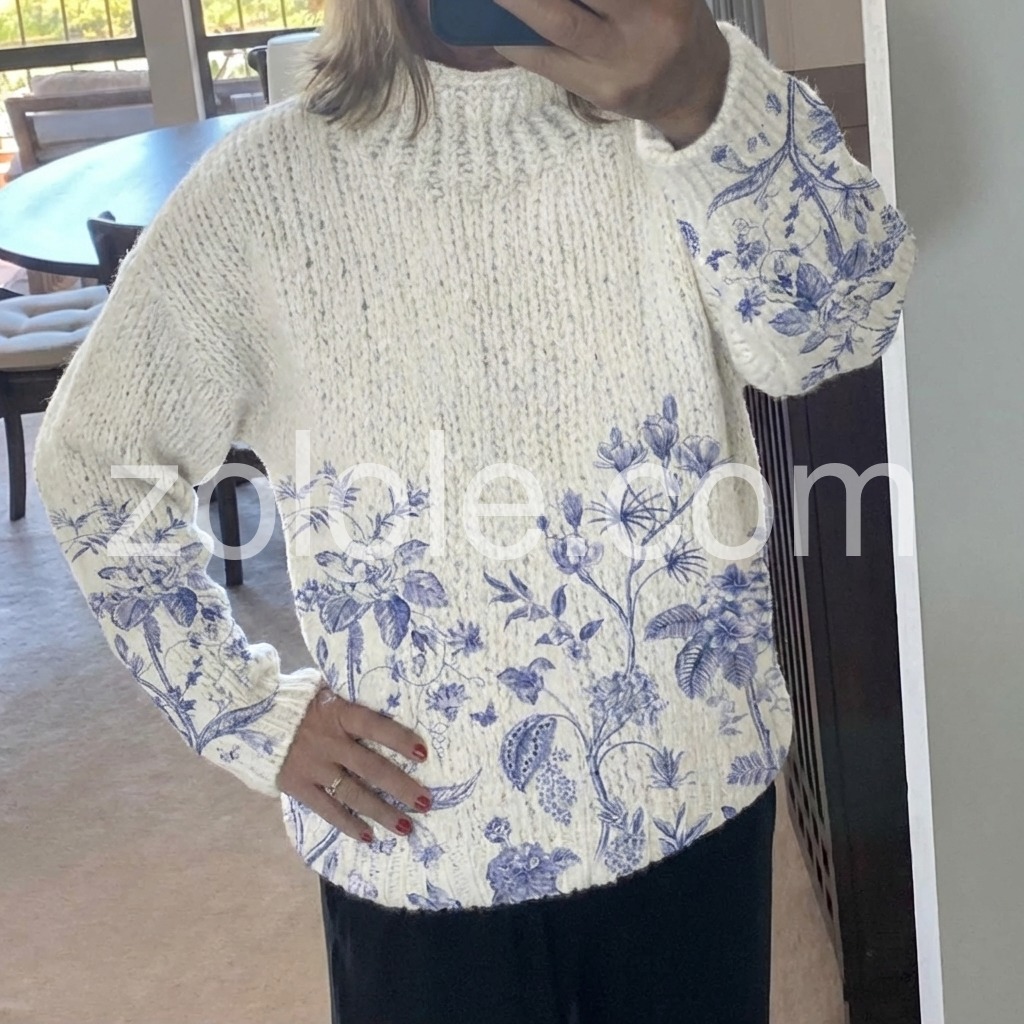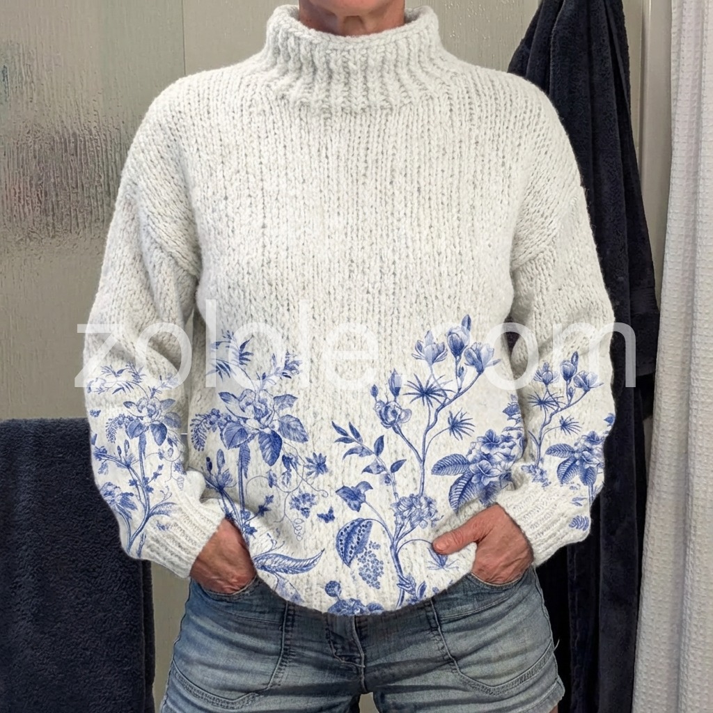 Fresh Plant Print Mock Neck Sweater