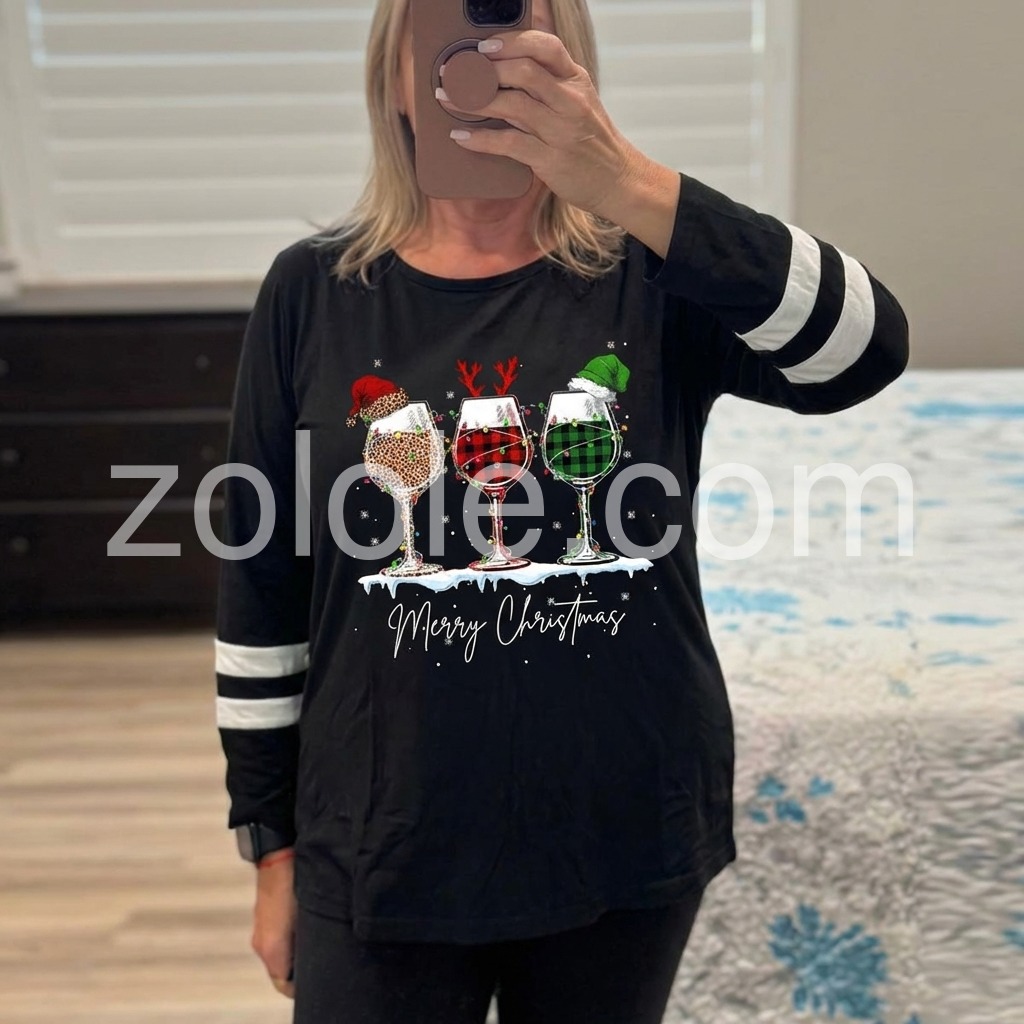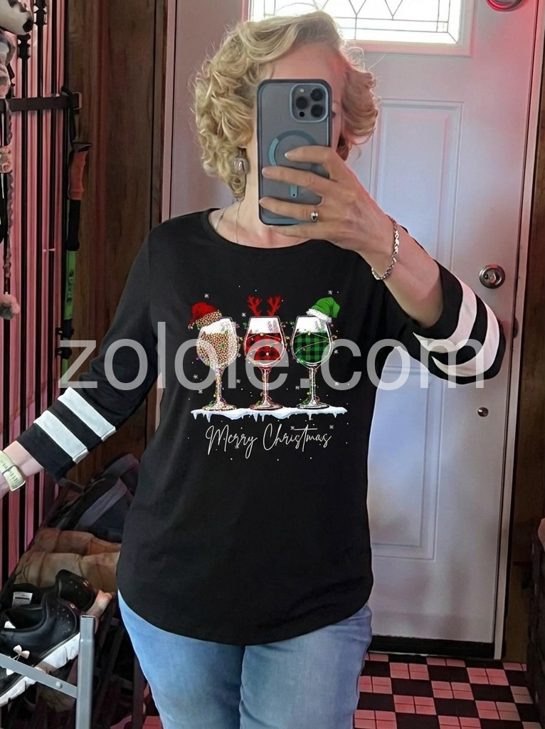 Stunning Print 3/4 Sleeve Round Neck Black Top