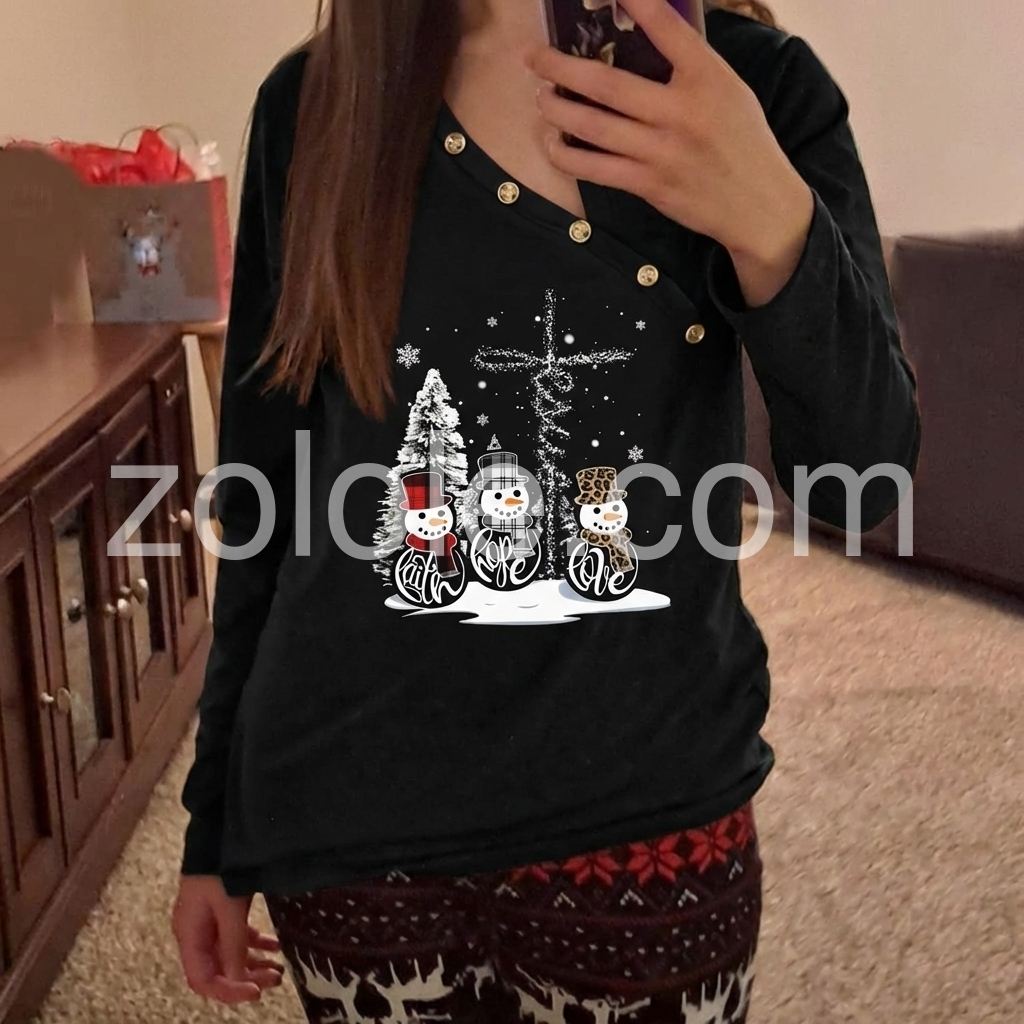 Three Snowmen Cross Asymmetrical Long Sleeve Top
