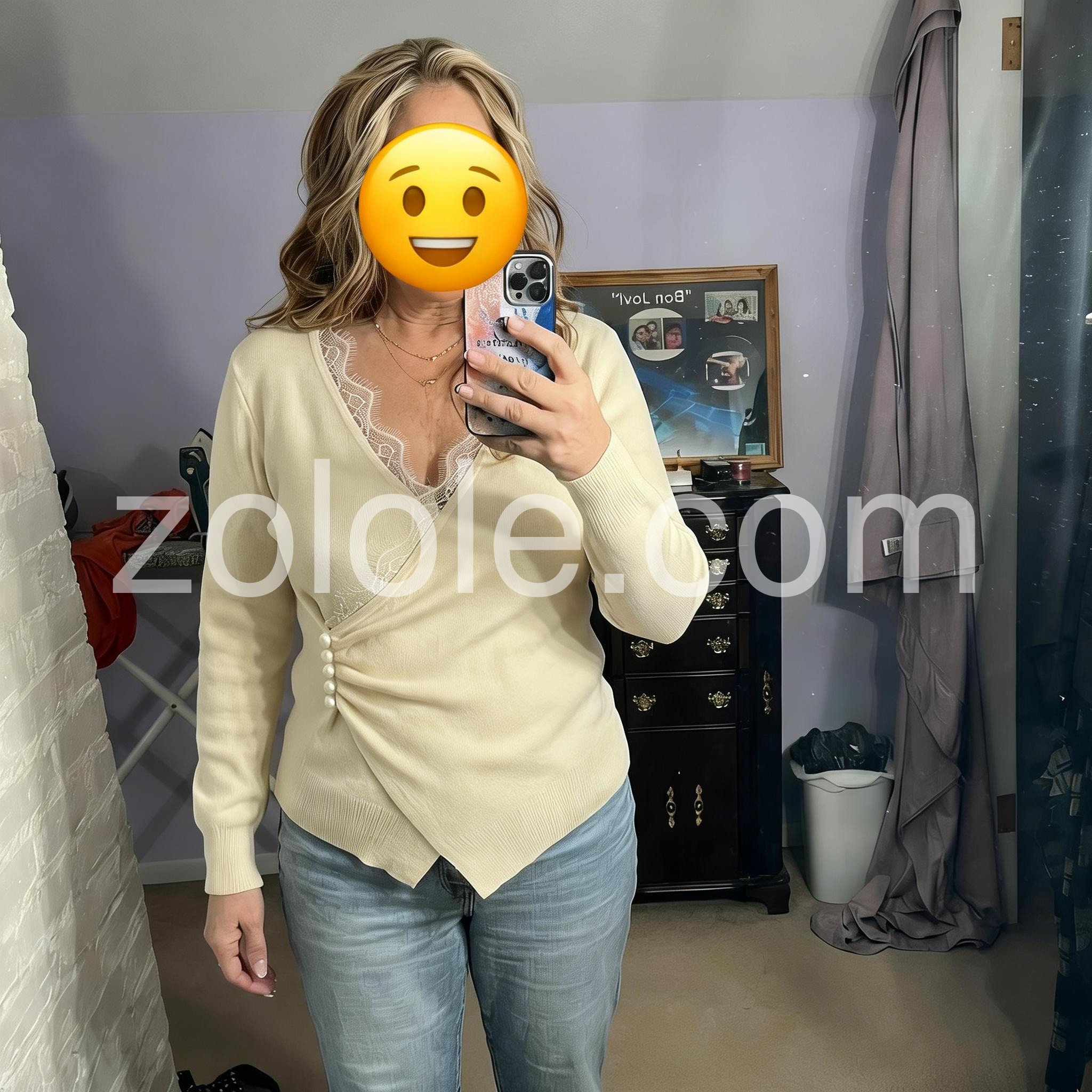 Vintage Lace Trim Wrap Plain Sweater