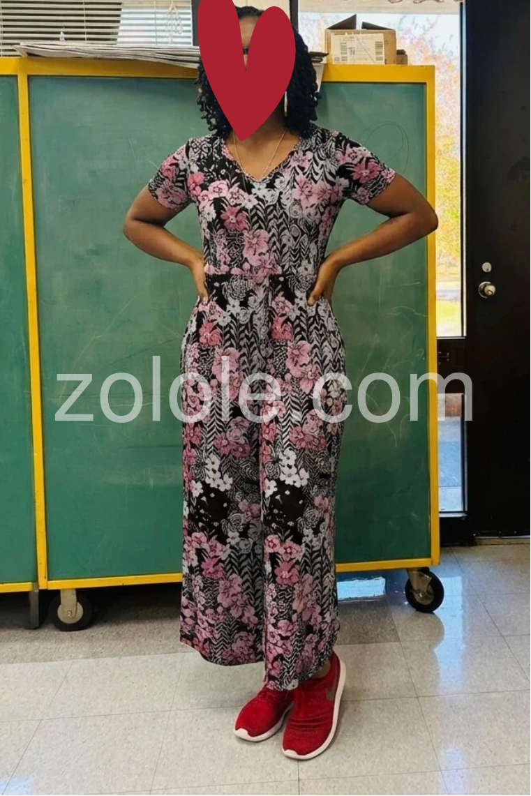 Black Floral Print Side Pocket Jumpsuit