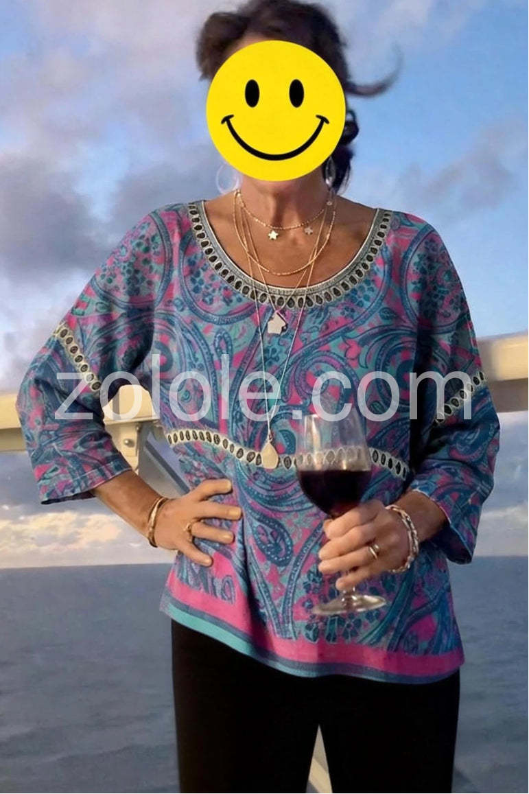 Special Paisley Print Round Neck Top