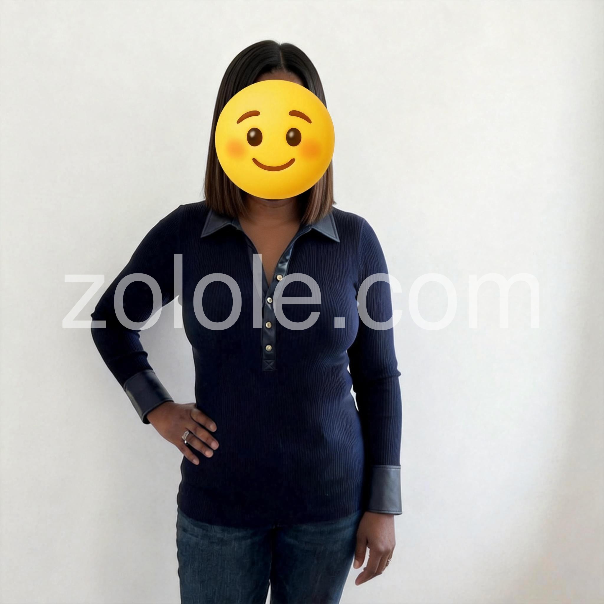 Chic Long Sleeve Faux Leather Trim Slim Fit Top
