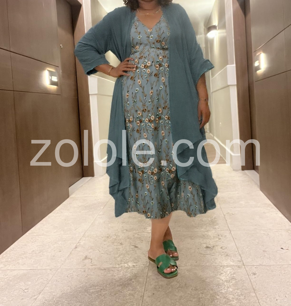 Youthful Ditsy Floral Print Maxi Dress With Thin Jacket Two Piece Outfits