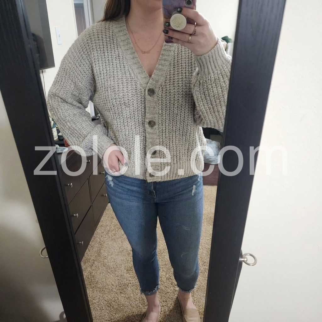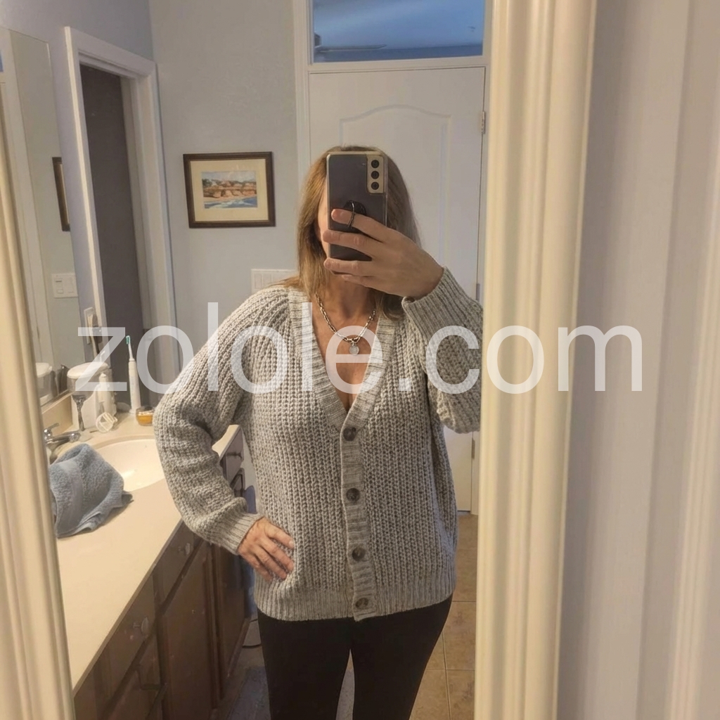 Grey Plain V-Neck Long Sleeve Sweater
