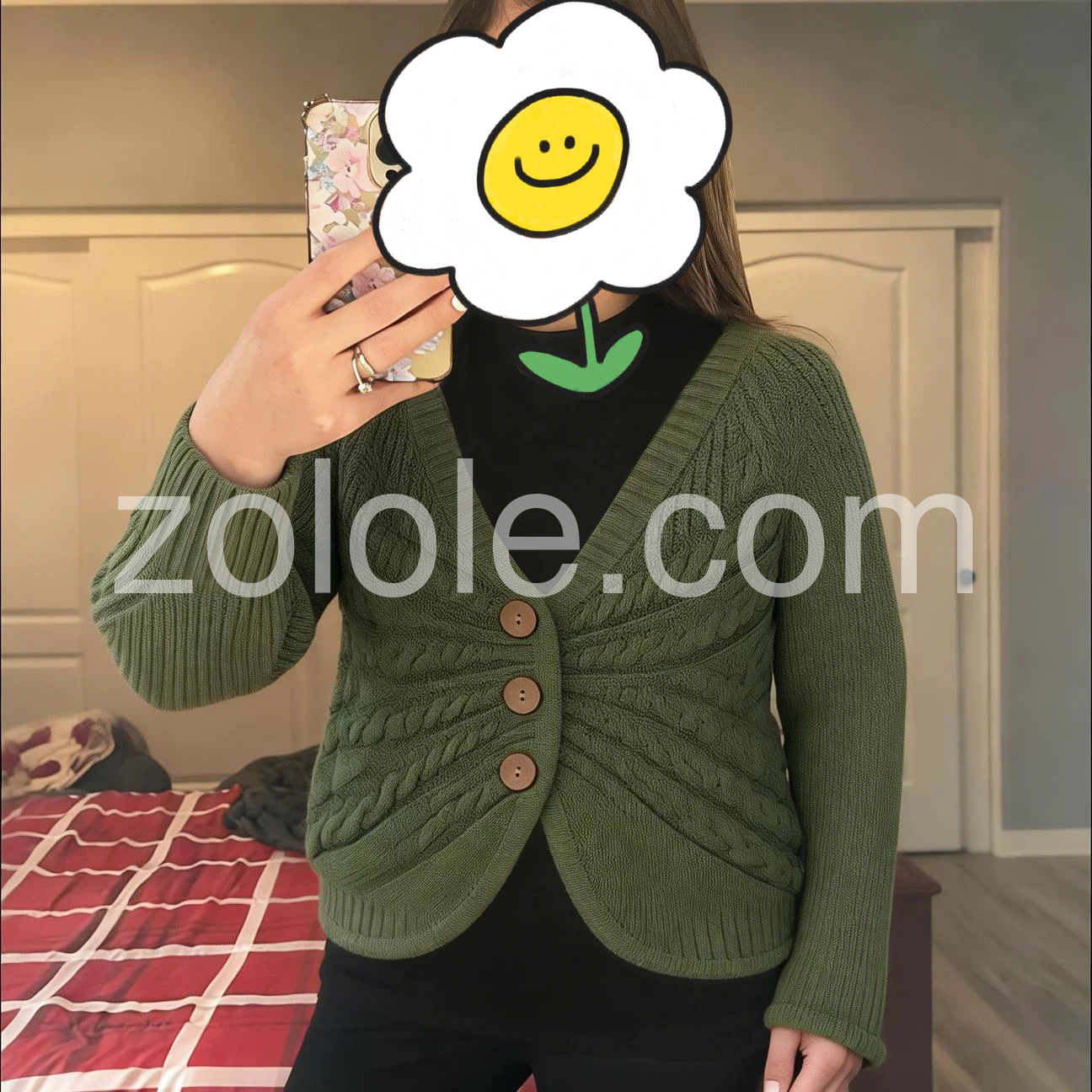 Green Long Sleeve Plain Sweater