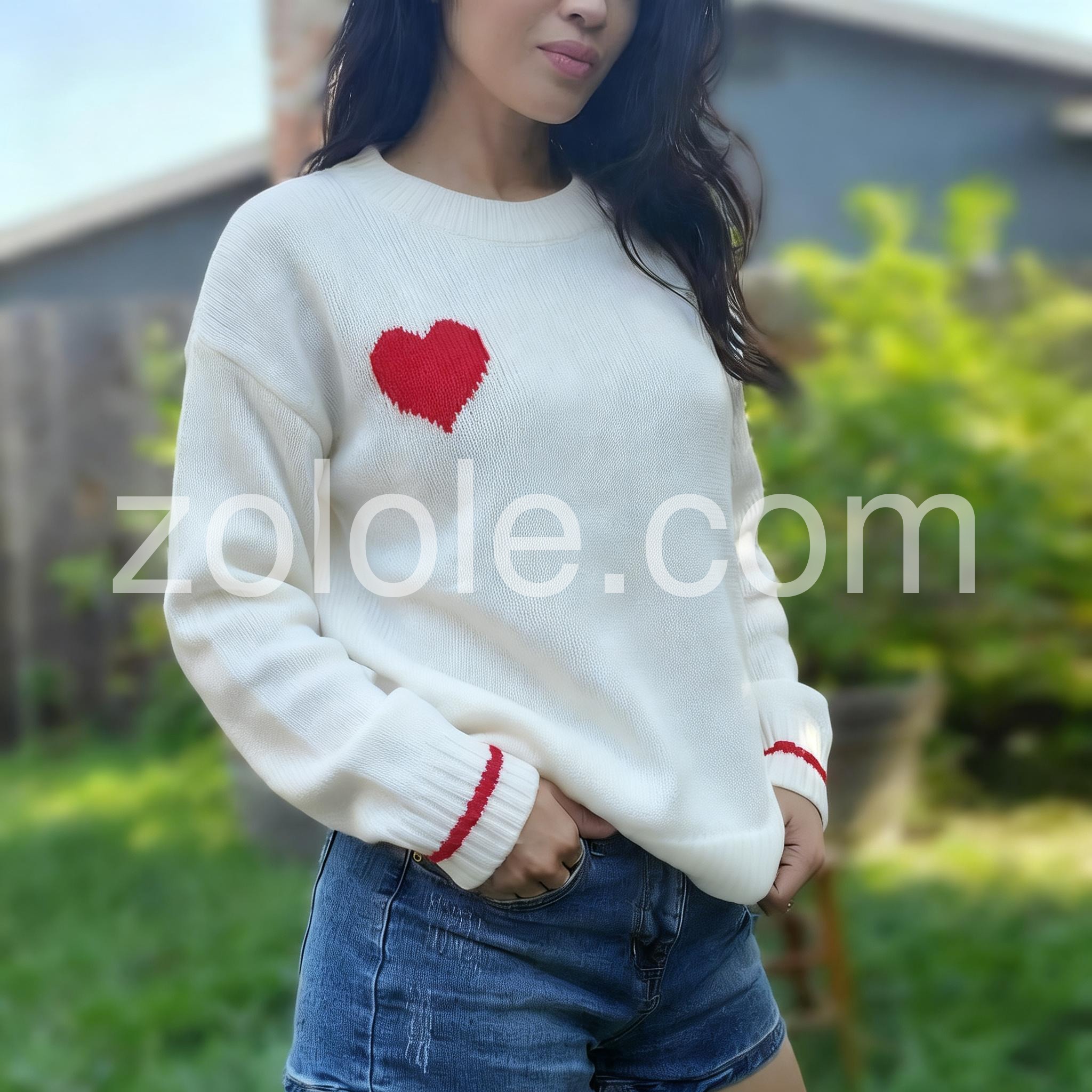 Red Heart Long Sleeve White Sweater