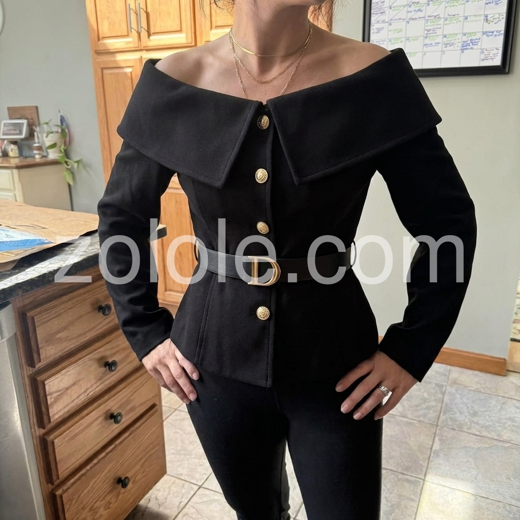 Black Plain Collared Long Sleeve Outerwear