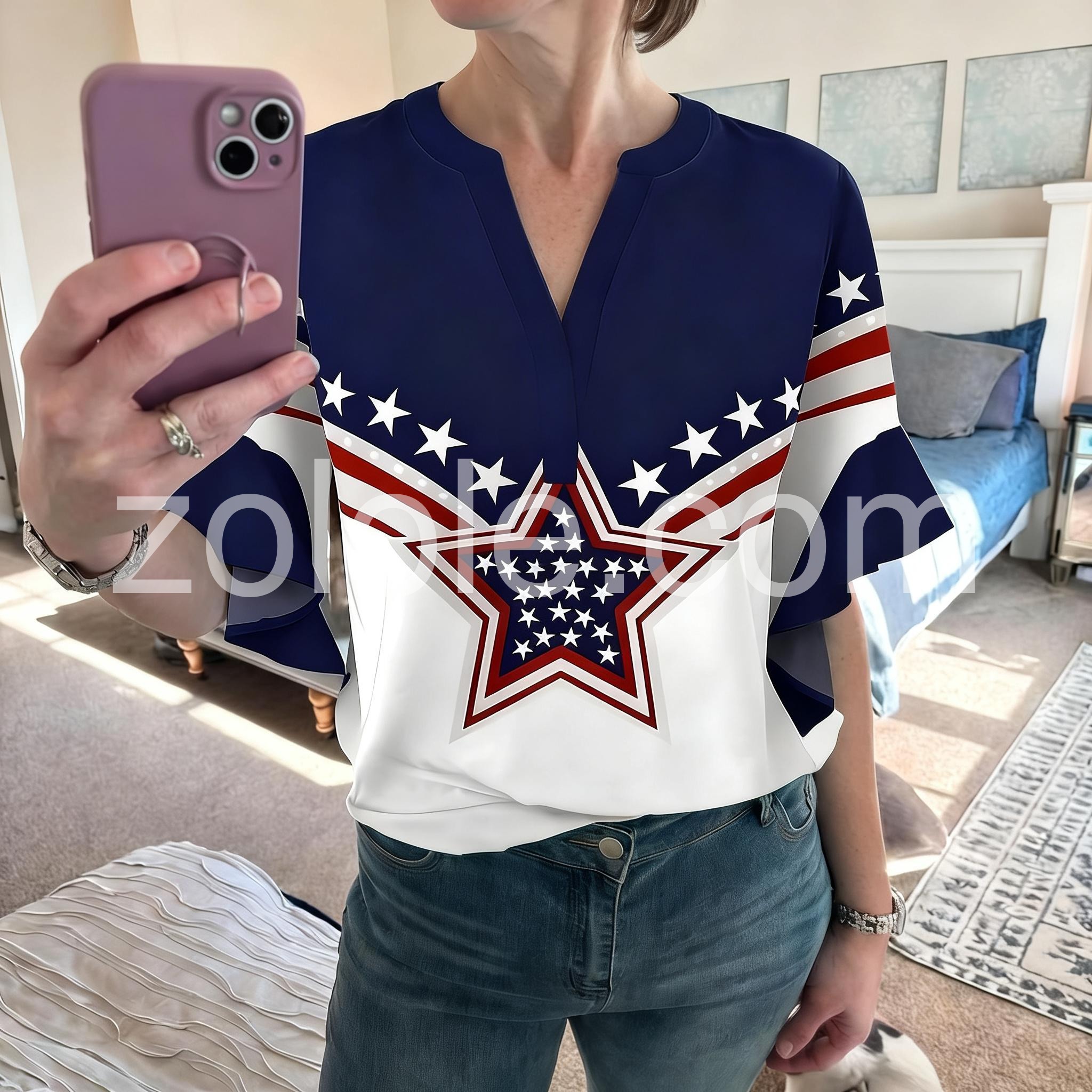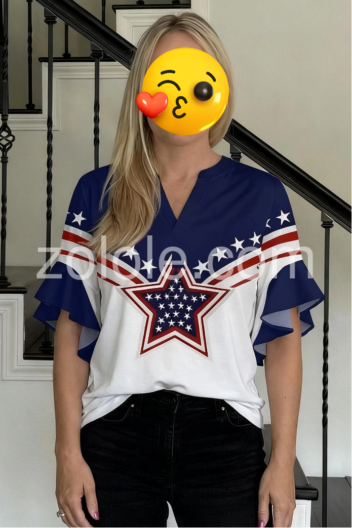 Trendy Blue Patriotic Star Print Top
