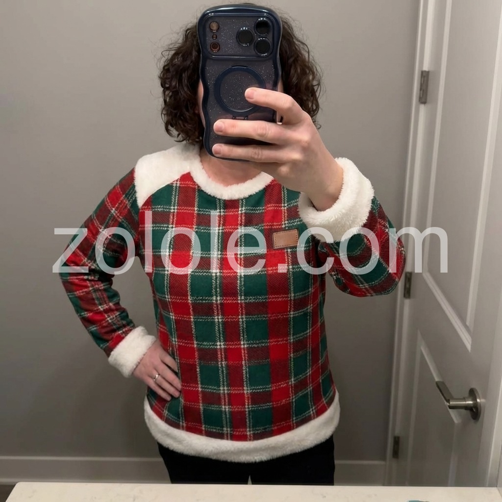 Delightful Plaid Faux Fur Trim Long Sleeve Holiday Top