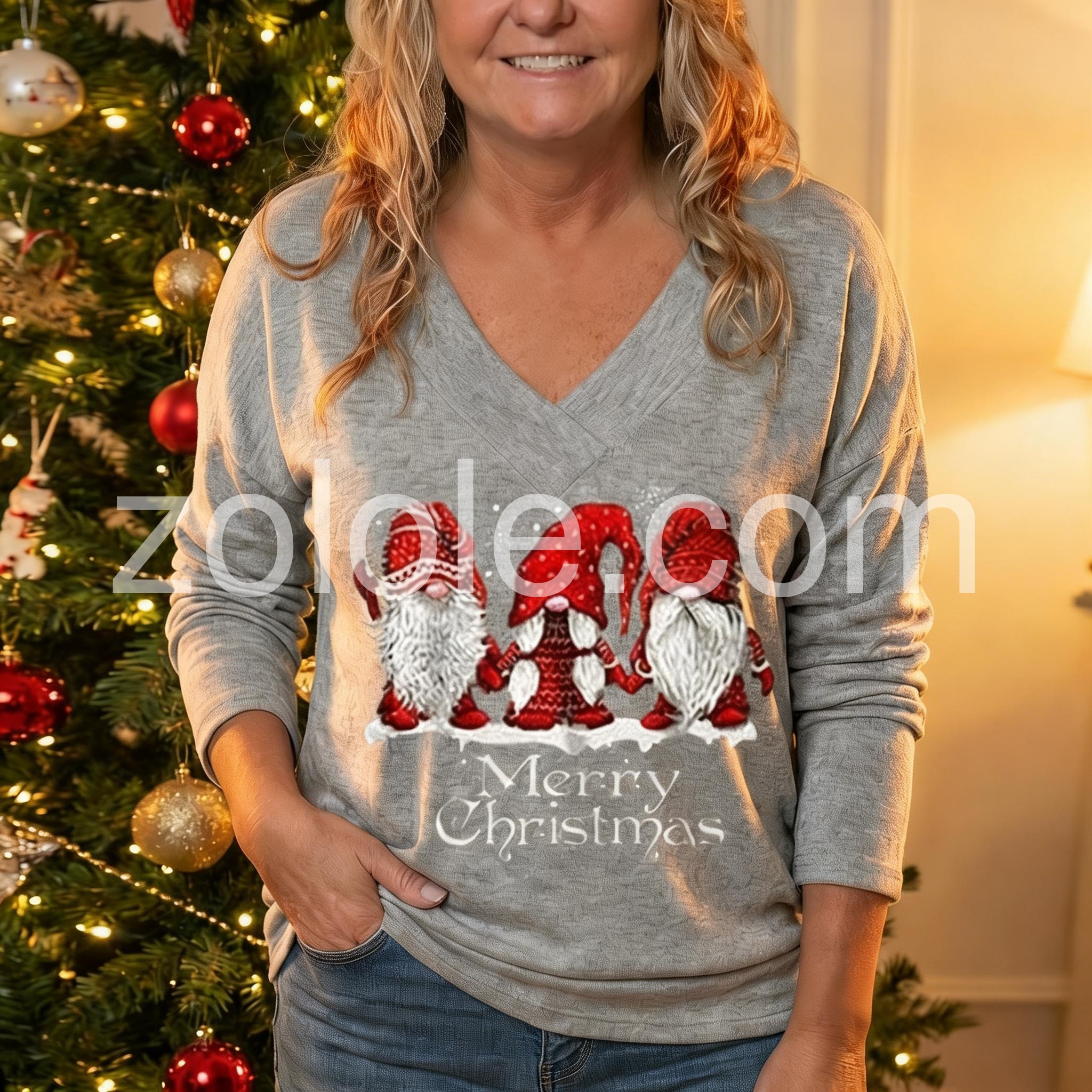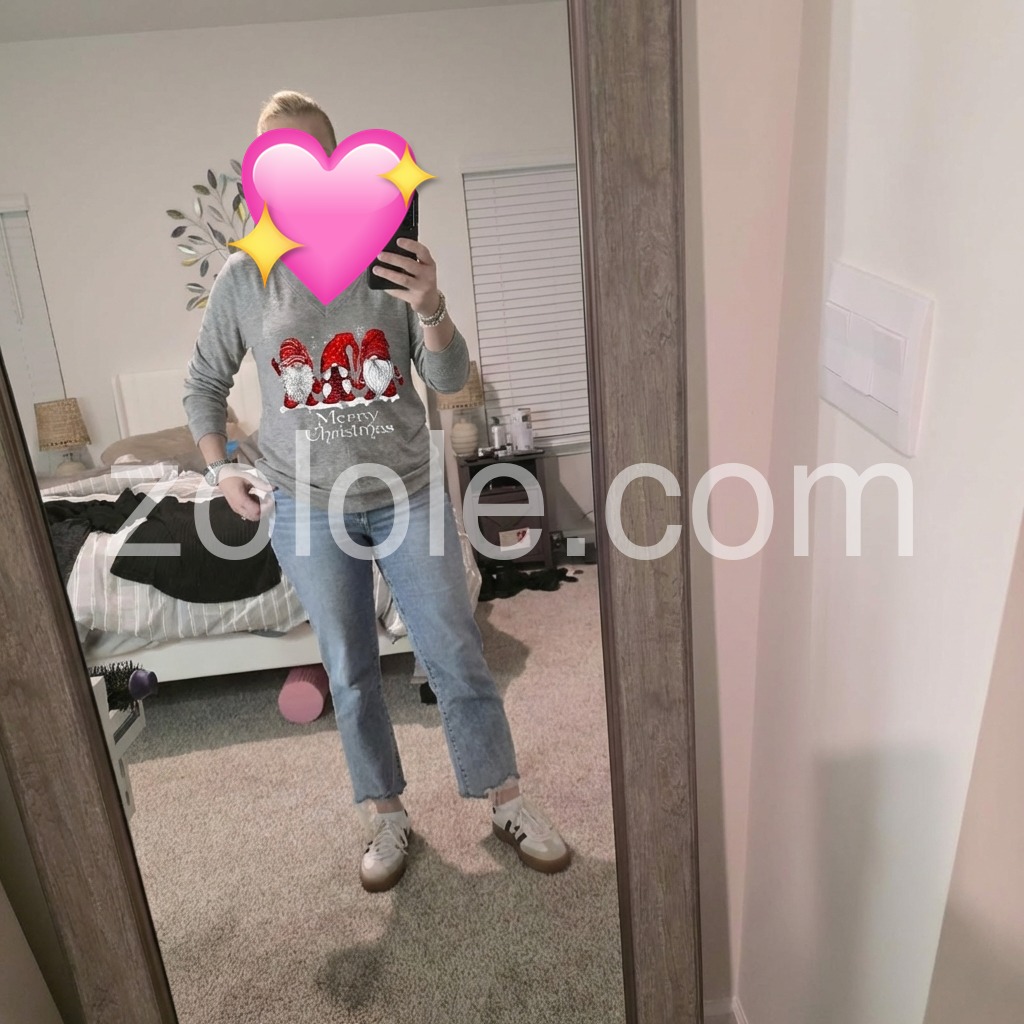 Grey V-Neck Cartoon Print Top